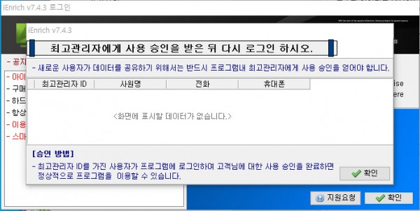 최고관리자에게 사용 승인을 받은 뒤 다시 로그인 하시오. 라는 메세지가 뜨는데