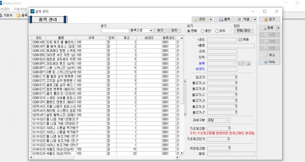 아이인리치로 넣기 후에 전산에서 품목을 보면 엑셀 데이터 상의 전체 규격 중 일부만 반영이 됩니다.