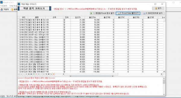 엑셀데이터 가져오기 후 사진