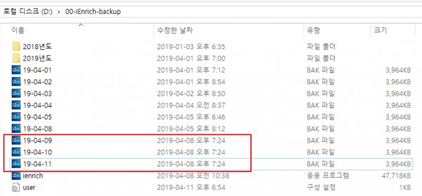 4월9,10,11일 백업파일 날짜가 4월8일로 되어 있습니다.