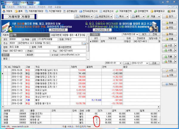 삭제 후 등록을 했는데 재고가 틀리고 거래처별거래장 금액은 맞습니다.