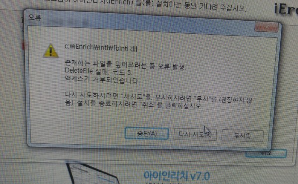 프로그램설치중 오류