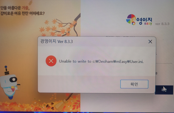 바탕화면에서 파일 열때, 로그인하고 난뒤 해당 사진의 오류문구가 뜨며