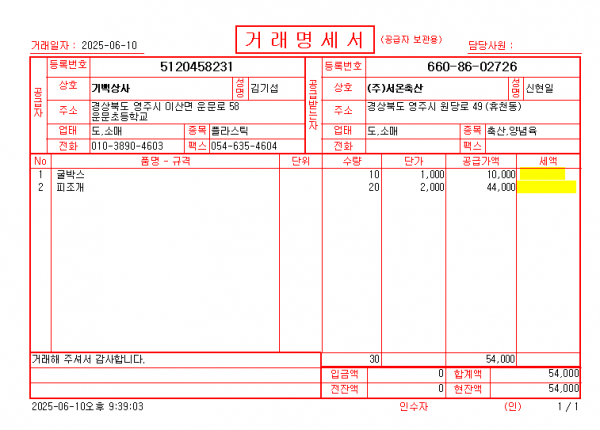 경영이지 프로그램에서는 세금이 표기되는데, 인쇄를 하면 세금표기가 안됩니다.