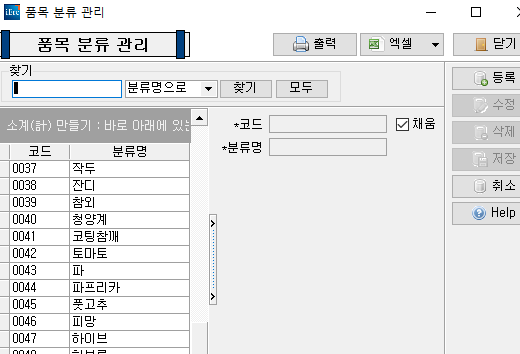 품목 분류 관리 코드 문의입니다.