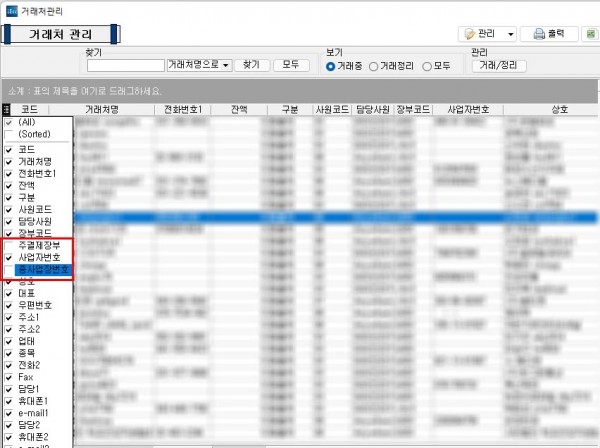 해당 부분은 항목이 없어지는 것이 아니라 단지 표 안에 보이기만 해제되는 것으로 전체 항목의 추가 또는 제거 등은 되지 않습니다.