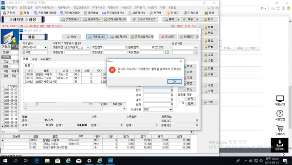 '데이터 저장이나 거래명세표 출력을 완료하지 못했습니다.'