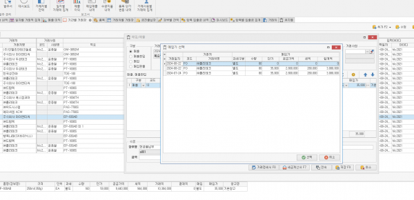 매출에 대한 매입의 수량과 금액등은 첨부의 창을 열었을시 즉시 수정과 항목 삭제 등이 가능하게 해주세요.