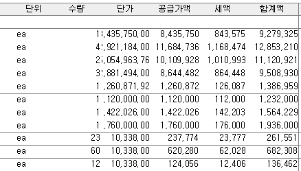 단가 부분 보면 숫자가 커서 아예 앞 부분이 안보여요