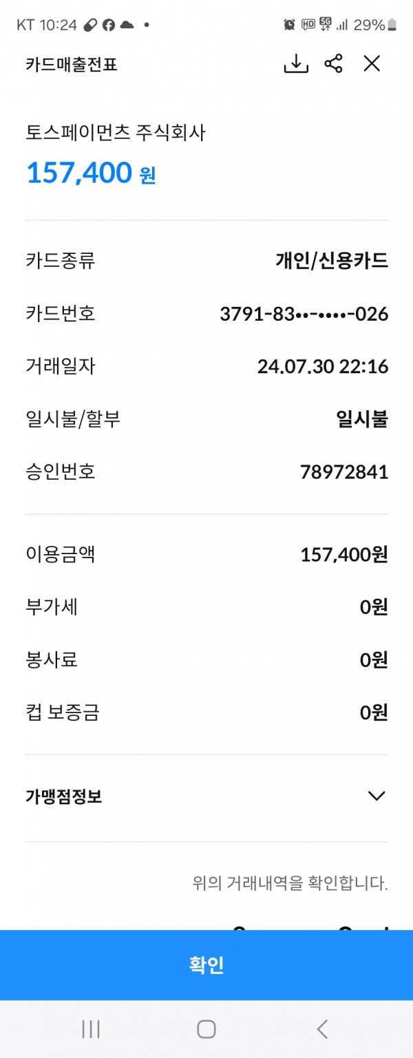 아래 취소 처리 해주실 카드 결제내역 첨부드립니다.