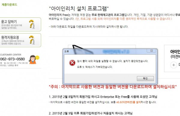 새로 컴퓨터를 바꾸고 나서 아이인리치를 다시 설치하는데 오류가 뜨면서