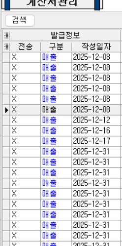 계산서 관리에서 저장한 계산서들을 전부 삭제후 (12월 분)