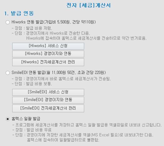 하이웍스 / 스마일EDI 연동을 통한 발급 (유료) 가 있습니다.