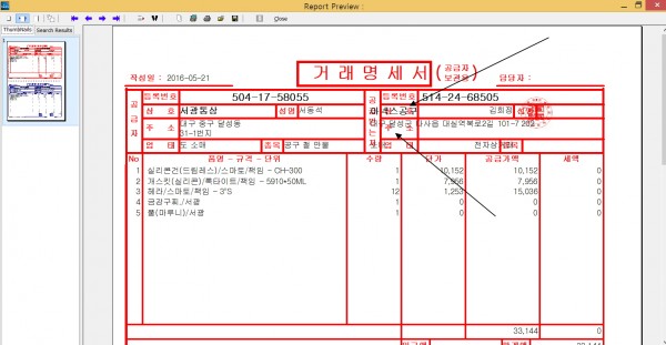 첨부한 그림과 같이 상호나 주소가  항목 칸에 맞게 들어가지 않고  앞으로 당겨져  보이고 프린트됩니다.