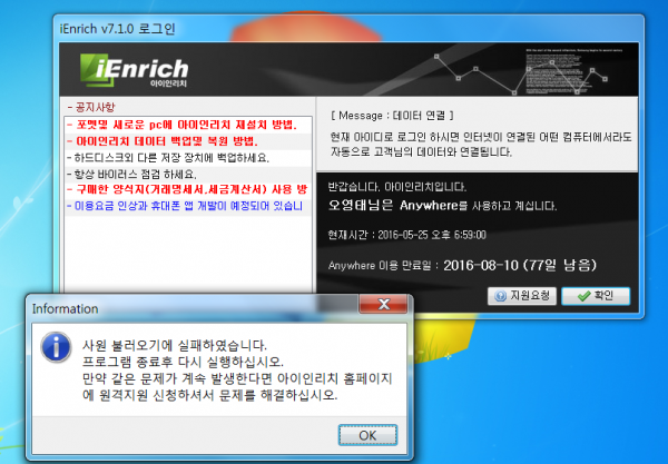 프로그램접속이 안됩니다.
