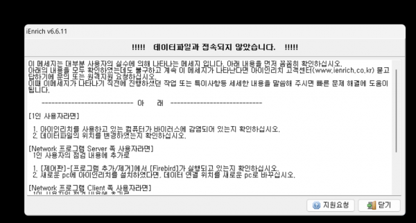 안녕하세요. 다름이 아니라 저희 어머니께서 오래전에 아이인리치 6.6.11 버전을 사용하고 있으셨습니다. 그러다가 노트북이 너무 오래되어서 바꿔주려고 하면서 이전 컴퓨터에서 내용을 백업하고, 새로운 컴퓨터에 백업을 하려고 하는데 오류가 뜨면서 접송이 안되는데 혹시 자료라도 건질 수 있을까요?