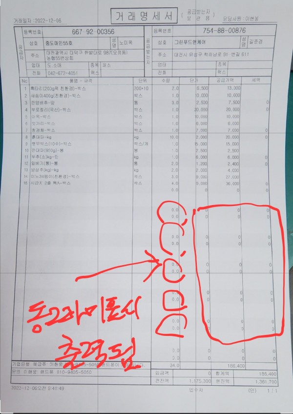 하지만 그아래로 수량,단가공급가,새액에 숫자 0 이